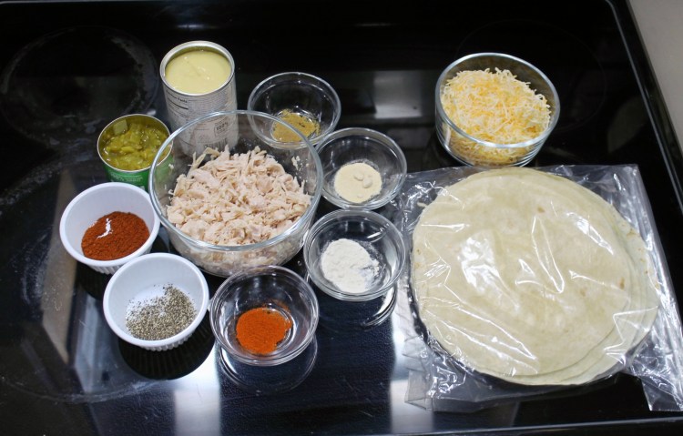 8. Spoon some of the chicken mixture onto the tortillas and spread it around evenly.