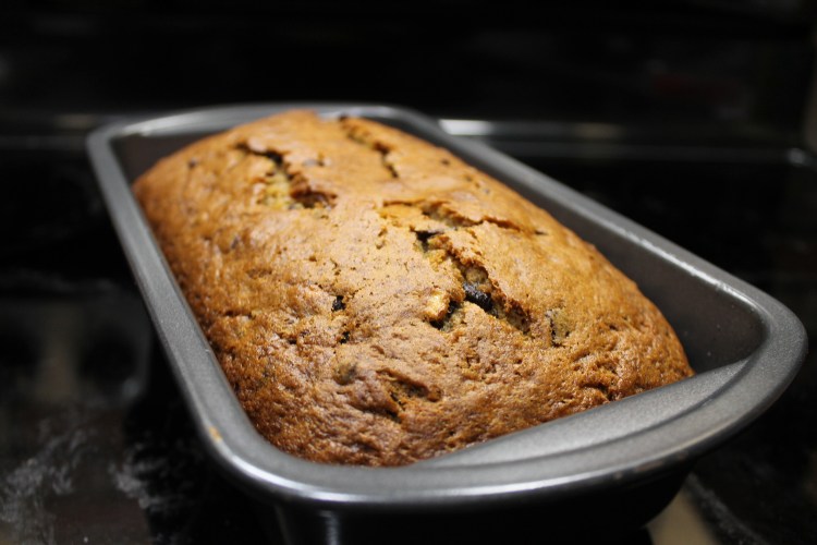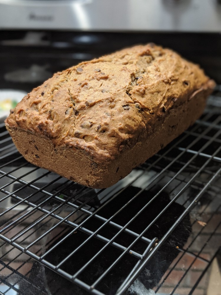 13. When the banana bread is done, cool for 5 minutes and then turn it out onto a cooling rack.