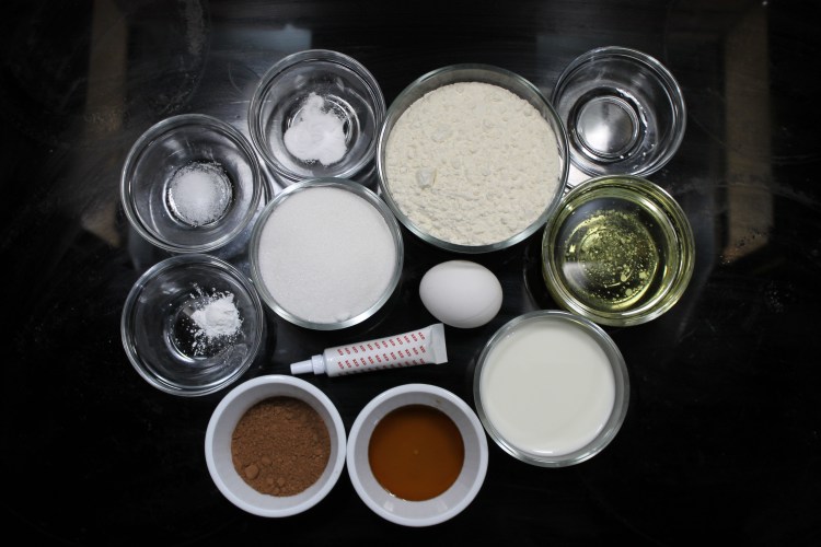 10. To bake the cakes, I used three 4-inch wide oven-safe glass dishes. They are about 3 inches deep. If you have small cake pans, those would work too. Or pretty much any similar sized pan, dish, or bowl that is oven safe.