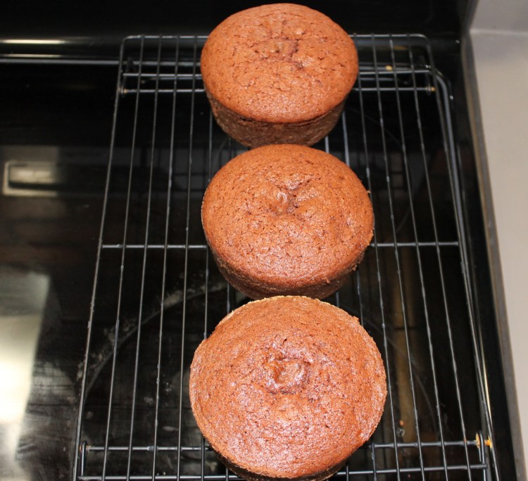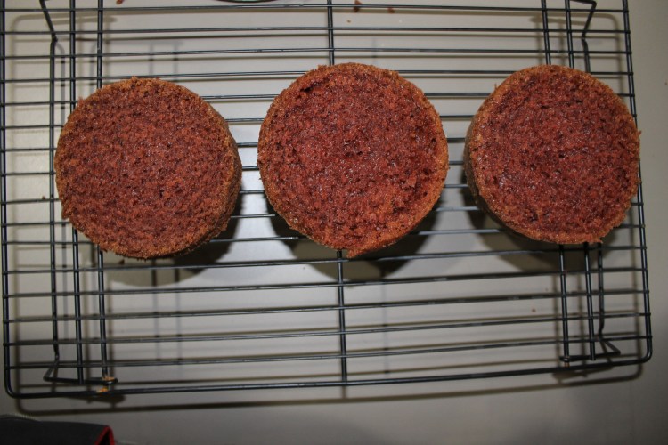15. Remove the cakes from the oven, let cool about 5 minutes, and then turn them out onto a cooling rack. Be sure the cakes are completely cooled before frosting, or your frosting will melt!
