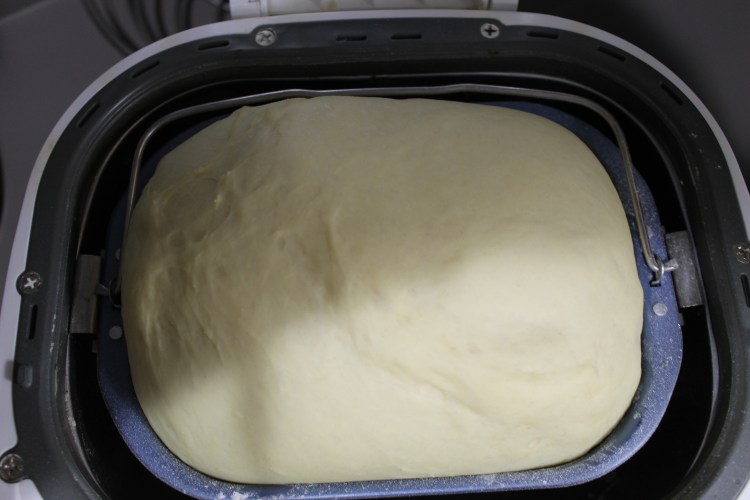 11. Next is to let the dough rise for 1 hour or until doubled in size. I allow the dough to rise in the bread maker. If you don’t have one, place your dough ball in a greased bowl and cover with a damp towel. If your house is a bit cold, you can let the dough rise in the microwave like you did with the yeast. Just be sure not to turn it on.