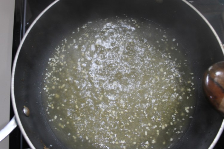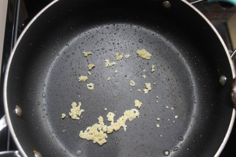6. Add the minced garlic to the pan and sauté for about a minute.