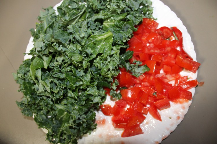 9. While the liquid is simmering, wash the kale and tomatoes. Remove the stems from the kale and cut the leaves into bite sized pieces. Small dice the tomatoes. Set aside the veggies.
