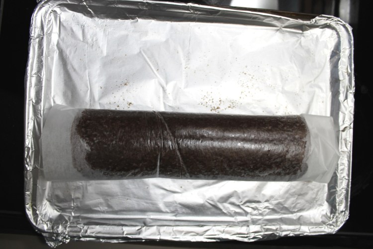 20. When the ganache has firmed up on the cake, cut the ends off of the cake so that the ends look smooth and uniform. (You can eat the ends as a little predessert treat!��)