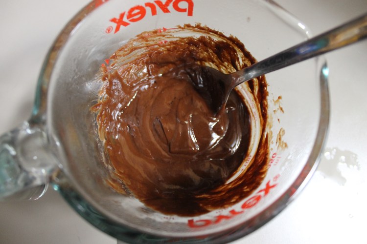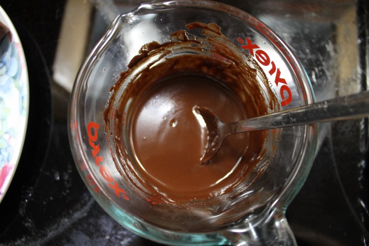 15. Microwave for 30 seconds and stir. If the chocolate is not completely melted, microwave an additional 30 seconds and stir until smooth.
