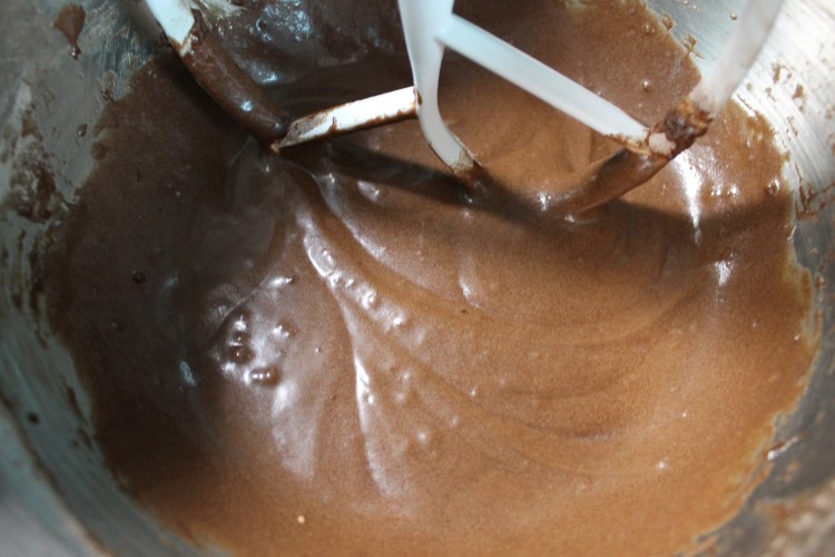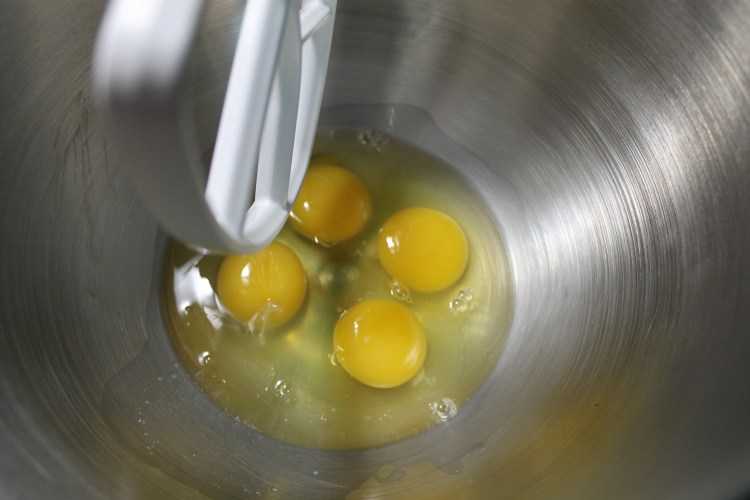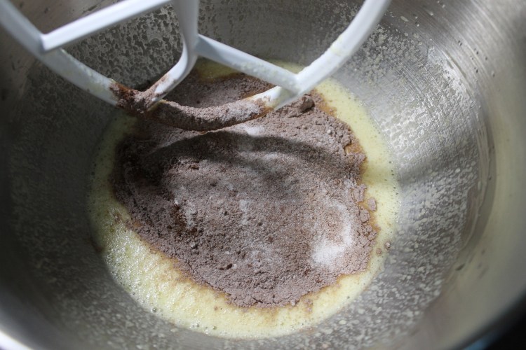 4. Dump the dry ingredients into the eggs and beat together until well combined.