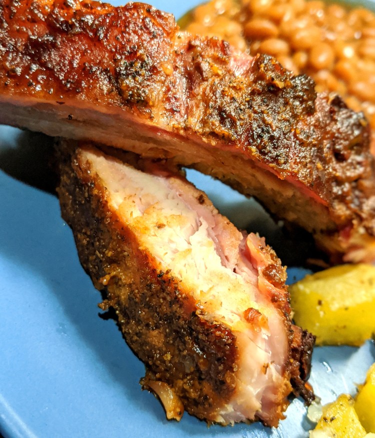 If you don’t know, my husband, Mike, is AMAZING at barbecuing, grilling, and smoking meat. Honestly, my husband is a really great cook in general. Anyway, when we have a family event at our house, he always barbecues some delicious meat of some kind and every one talks about it forever. I’m not joking. Mike made grilled chicken for my grandparents like 2-3 years ago, and my grandpa is STILL talking about itπ Personally, I don’t love barbecue usually. Things like pulled pork, ribs, brisket, and things like that, just aren’t usually my thing. However, there has never been a barbecue meat Mike has made that I didn’t like. Anyway, enough gushing over my husband’s pit master skills, he has agreed to share his smoked rib recipe here on the blog. I am SO excited to share one of his recipes. I hope you guys love it as much as I do. If you like (or don’t) the recipe, there is a little survey at the very end if you want to let us know what you thought! (This is actually at the end of every recipe and we’d love to hear your thoughts on the recipes if you feel like sharing after you’ve tried themπ)