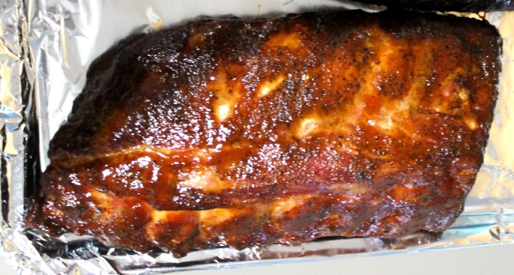 13. After glazing the ribs for a second time, wrap the ribs tightly in foil. Doubling up the foil is best so the juices don’t leak out.