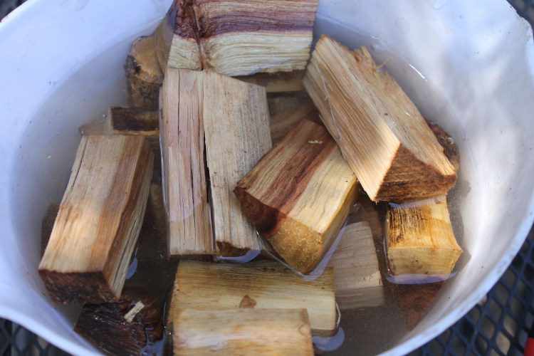 2. While the ribs are resting, place your wood chips in a bowl of water to soak.
