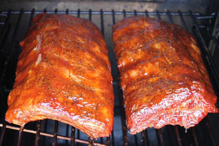 11. After glazing the ribs, continue smoking them for another hour and a half (90 minutes).