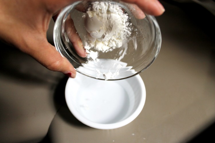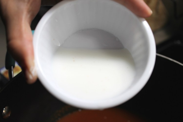 9. In a small bowl, add the corn starch to the water and mix together, making a slurry. This will thicken the sauce some.