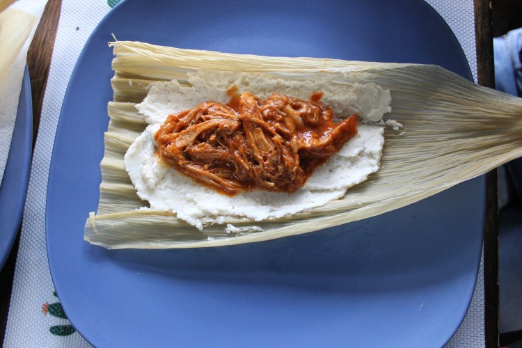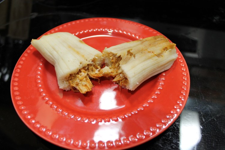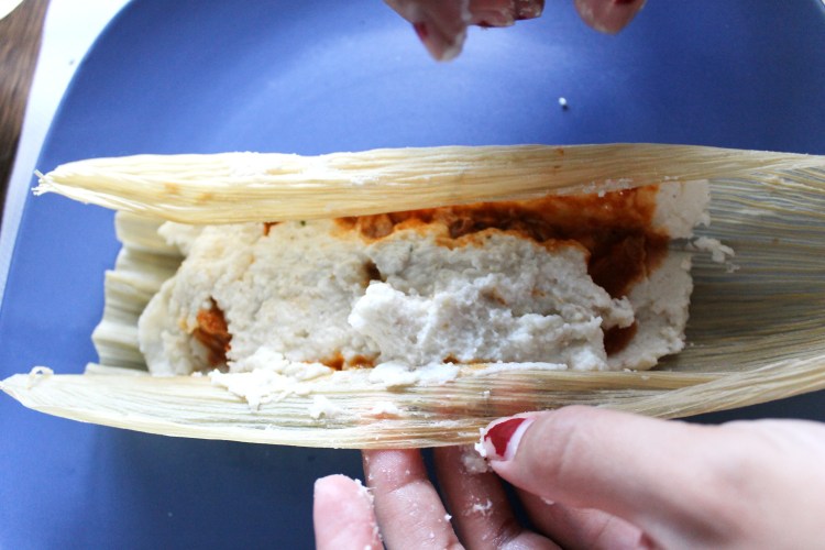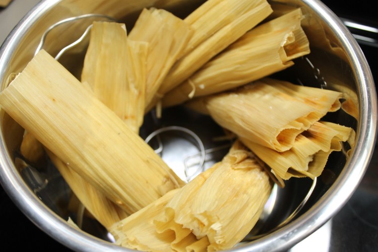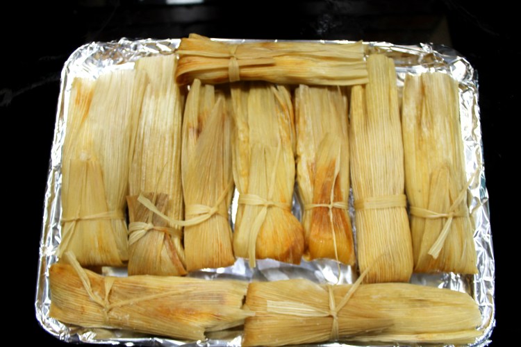 26. Take the cooked tamales out and place them on a a plate or a tray until ready to serve.