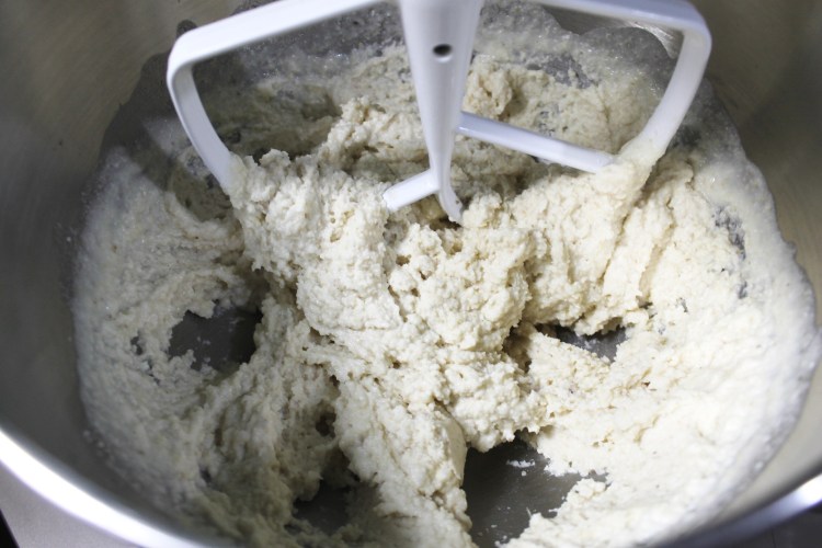 12. Then add the 2 1/4 cups chicken broth and mix well, forming a paste like substance.