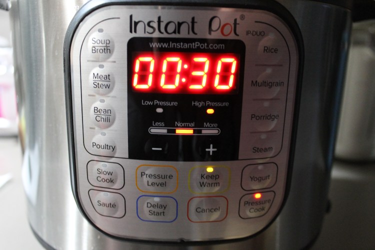 24. Place the lid on the instant pot, set the valve to “sealing” and then pressure cook, high pressure, for 30 minutes.