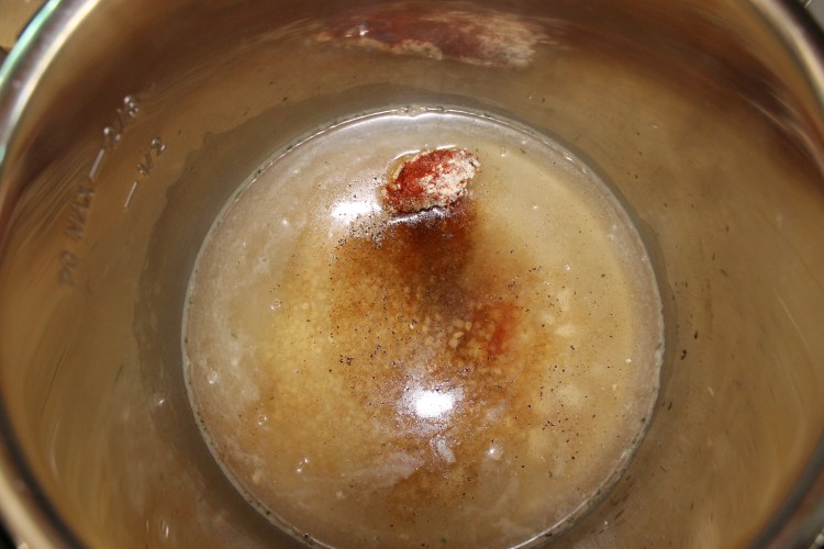 1. Add the chicken broth, onion powder, minced garlic, seasoned salt, black pepper, paprika, cumin, and chili powder to the instant pot. Then stir it all together.