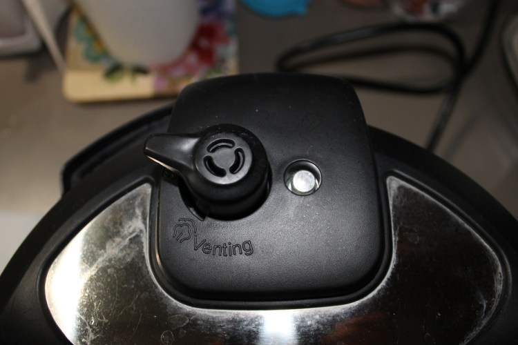 6. When the instant pot has natural released for 30 minutes, use a long wooden spoon to set the valve to “venting”. When the steam has stopped coming out and the float has gone down, it is safe to remove the lid.