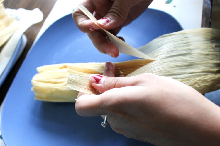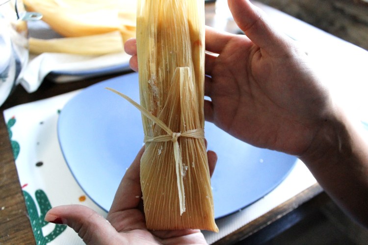 27. When you’re ready to eat, unwrap the corn husk and enjoy! The tamales can be stored in the fridge and then reheated when you are ready to eat.