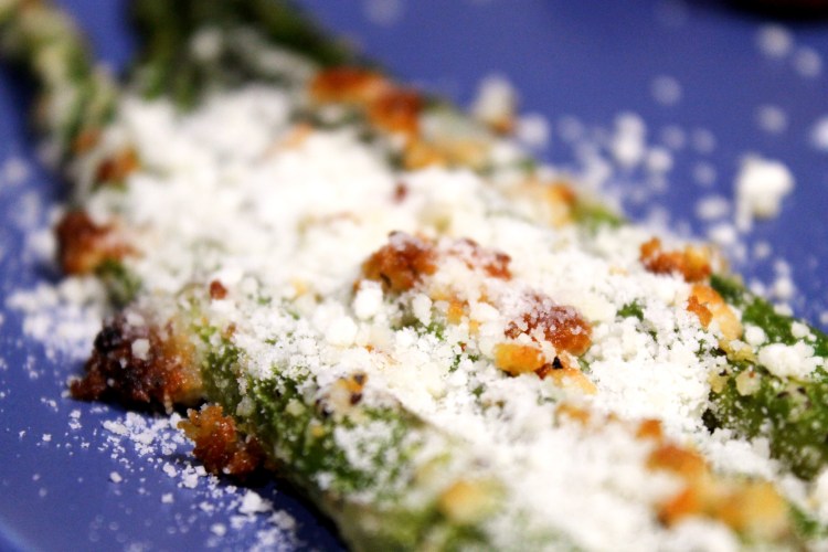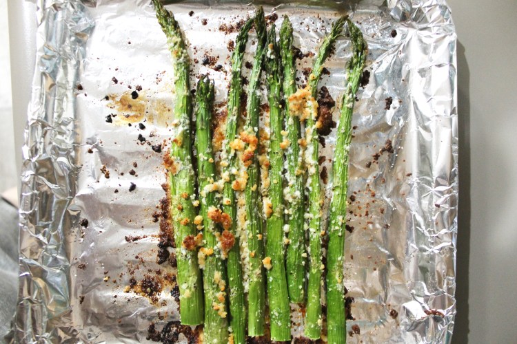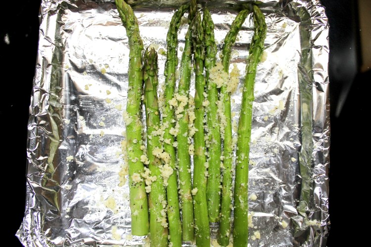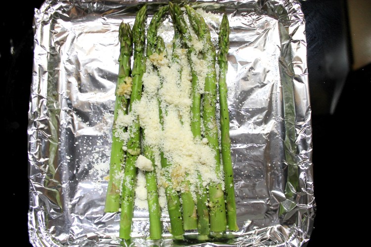 7. Let it cool for a few minutes and then sprinkle the remaining grated parmesan on the asparagus once you have it on the plates.