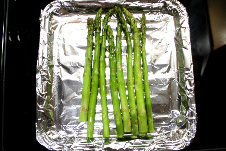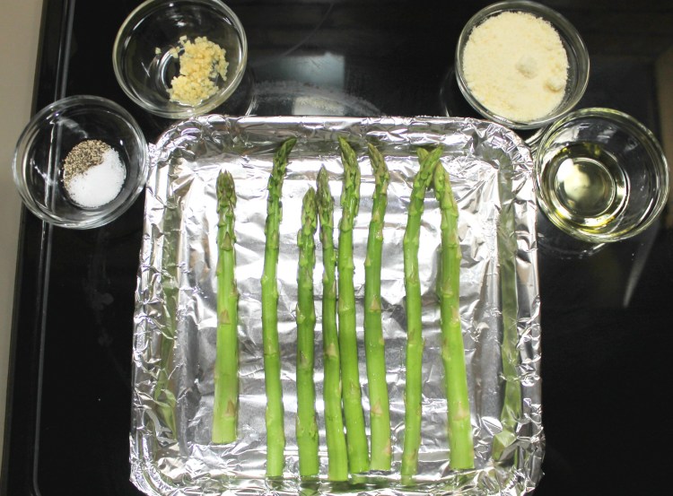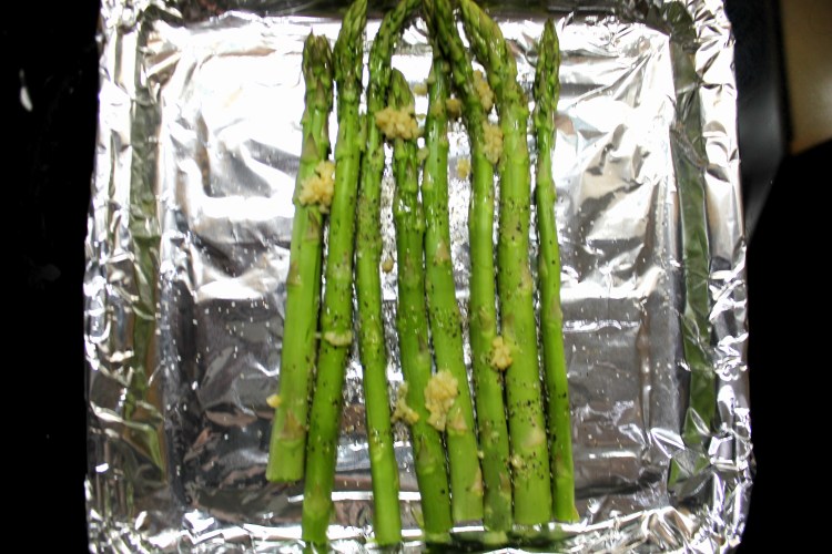 5. Roll the asparagus around to make sure each stalk is coated in all the ingredients.