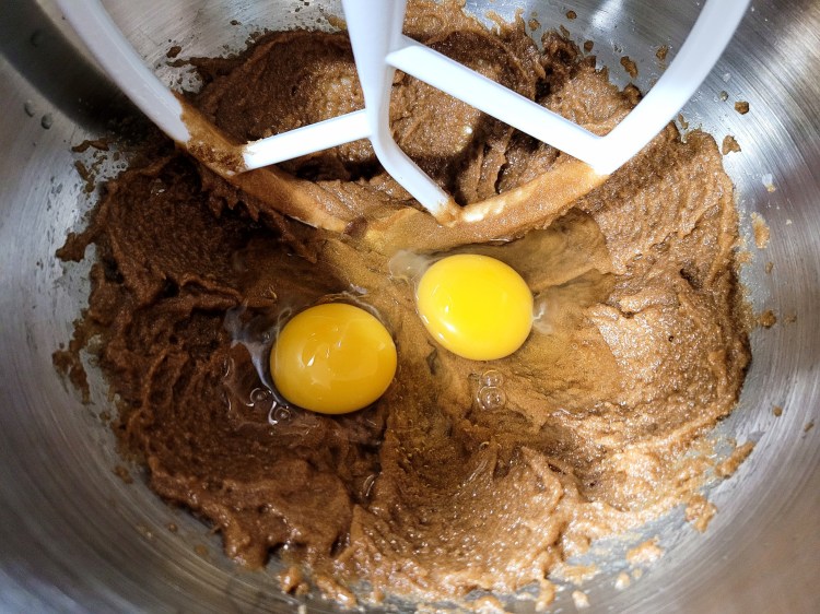 5. Add the mixed dry ingredients to your mixing bowl, one half at a time. Be sure to scrape the bowl with a rubber spatula between additions to ensure all the ingredients get incorporated.