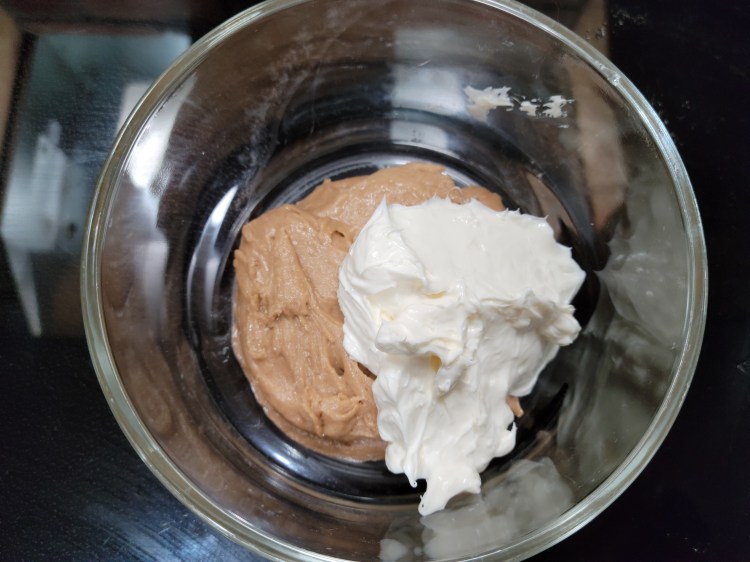 7. Mix the softened cream cheese into the 1/4 cup of the batter.