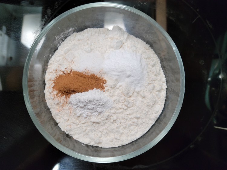 2. Mix together the flour, salt, baking soda, baking powder, and cinnamon in a medium bowl.