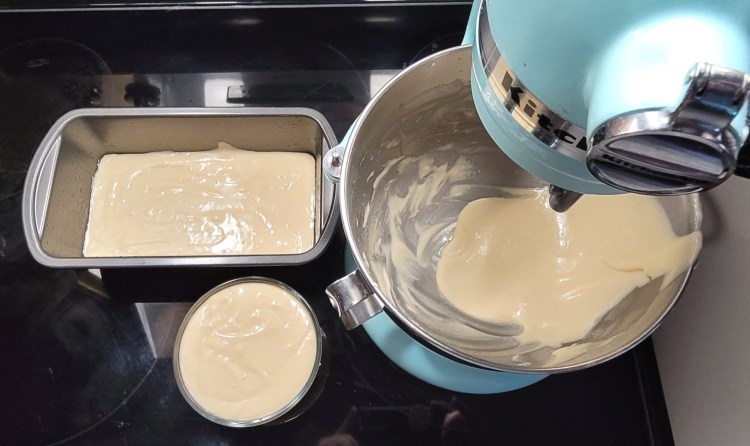 11. Lastly, pour the last third of batter (that was previously set aside in step 7) in to the loaf pan.