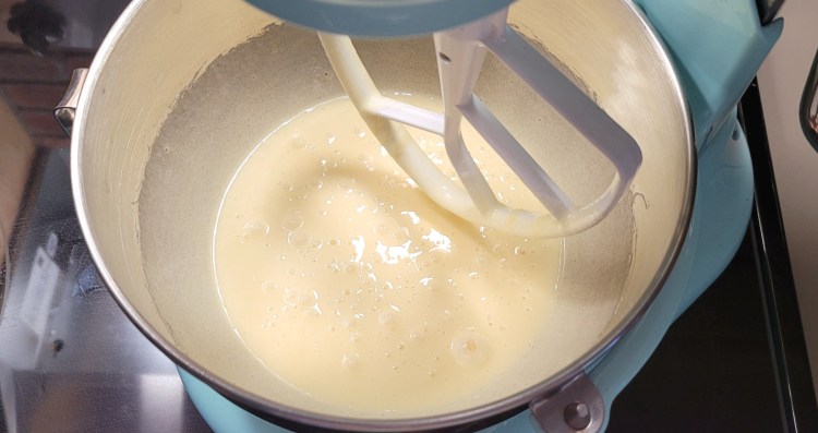 7. Grease your loaf pan well and pour in about a third of the batter. Put another third of the batter in a separate bowl and leave the last third in your mixing bowl.