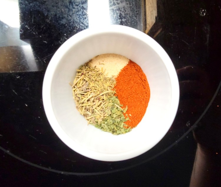 5. In a separate bowl, mix all of the seasonings together so that they are mixed well.