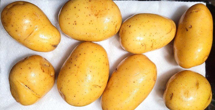 2. Wash the potatoes and then dry them thoroughly.