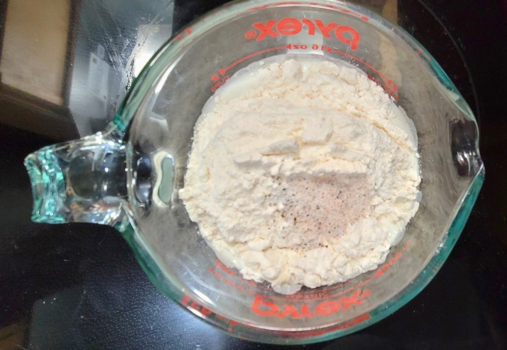 8. Add the Bisquick mix to the small bowl and the remaining 1/4 tsp salt, 1/4 tsp pepper, and 1/4 tsp chili powder. Then mix it all together until there are no lumps in the batter.
