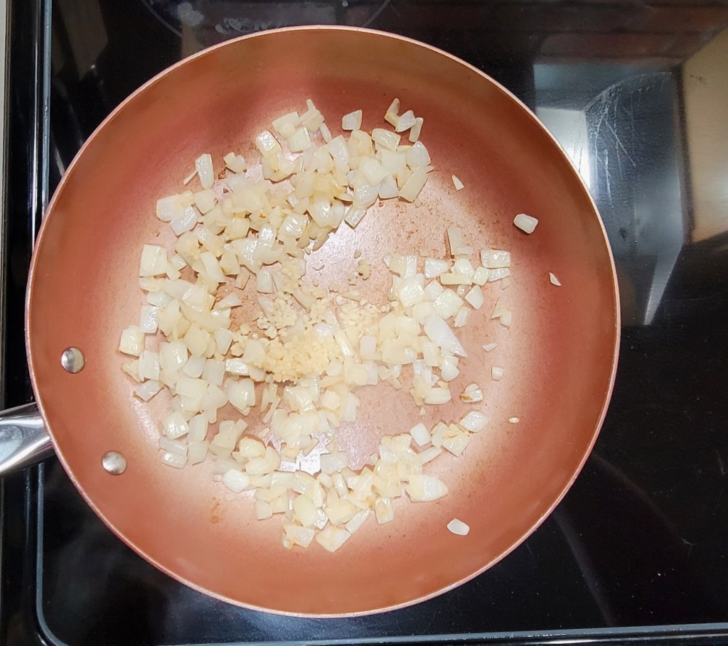 3. Add the garlic and continue to sauté until everything is golden brown and the onion is translucent.